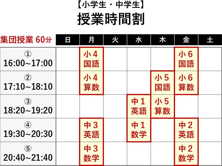 学びのゴール ▪︎読解力・思考力・表現力の基礎を習得し、中学以降の学びにつなげます。 |