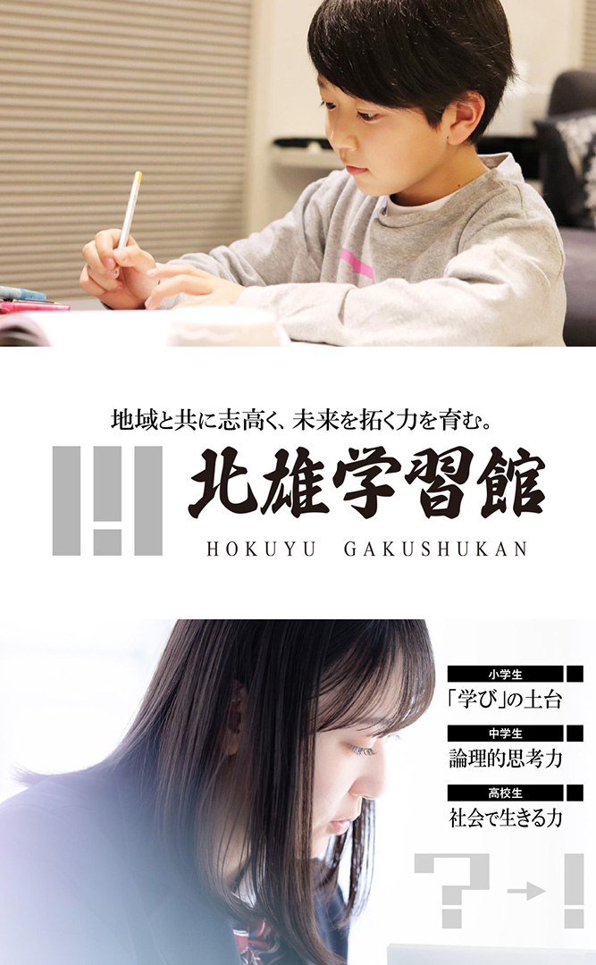 「北雄学習館」では、生徒一人ひとりの個性や学びのペースを大切にし、確かな学力の向上はもちろんのこと、自ら考え、自ら判断し、自ら解決する力を育む指導を心がけてまいります。また、保護者の皆様との連携を重視し、安心してお任せいただける環境を整えます。